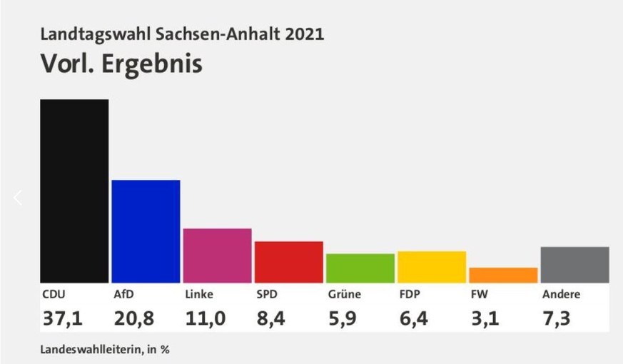 / Hochrechnung Wahl Sachsen Anhalt / Qxza8nc5lqiotm - Sie holt laut einer ersten prognose 35 prozent der stimmen und landet damit deutlich vor der afd, die auf gut 23 prozent der stimmen kommen dürfte.